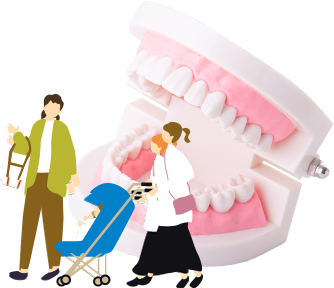 お口の健康を長く守るためには、定期的な通院が必要です。患者さんの通いやすさを大切にしており、お車でお越しのかたがスムーズに通院できるよう、大型駐車場を備えています。院内はバリアフリー設計で、プライバシーに配慮した診療室やお子さんが楽しく遊べるキッズスペースもご用意しています。