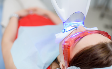 歯科医院で行うホワイトニングです。ホワイトニングジェルを「ハロゲン」などの光と反応させることで、より早く効果を実感できる方法です。