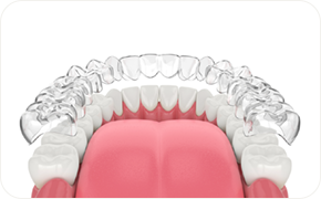 目立ちにくい透明のプラスチック製マウスピース型装置を使用します。患者さん自身で取り外しでき、これまで通りに食事を楽しめ、しっかりと歯みがきできるのがメリットです。金属アレルギーが気になるかたにもご使用いただけます。