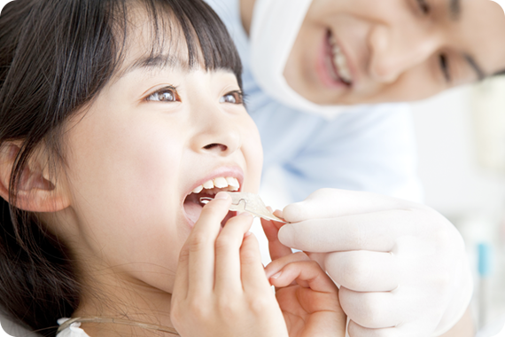 お子さんの歯並びが気になる、矯正治療が必要かどうか悩んでいるという場合は、まず当院の無料相談をご利用ください。歯科医師がお子さんのお口の中をチェックして、さまざまな質問や疑問に丁寧にお応えします。