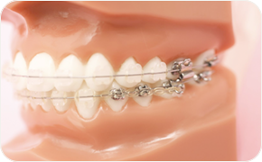 歯の表面にブラケットと呼ばれる小さな器具をつけ、ブラケットに通したワイヤーの力で歯を移動させます。当院では、従来からある金属製のブラケットの他、目立ちにくい透明のブラケット、白いセラミックブラケットもご用意しております。